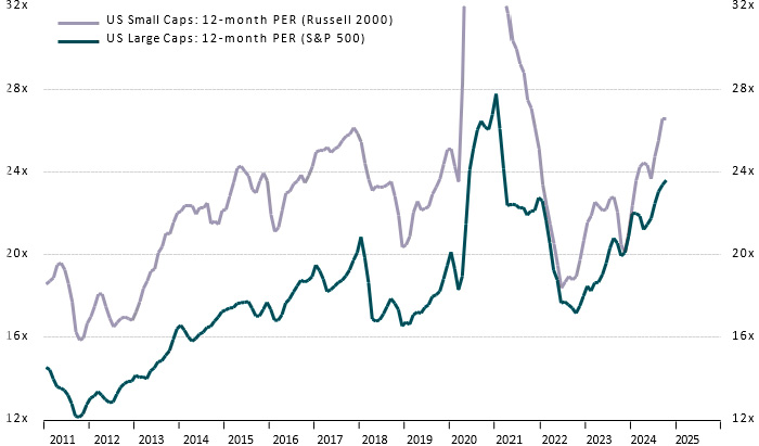 Chart 4: US Large Cap 12m Fwd P/E; US Small Cap 12m Fwd P/E