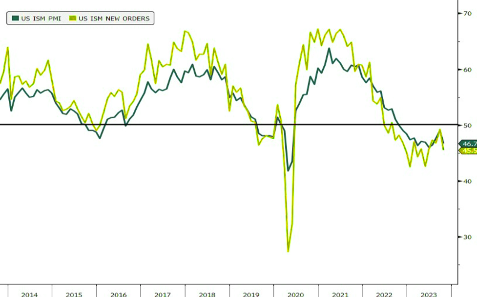 Chart 7: U.S. ISM PMI (46.7); U.S. ISM New Orders (45.5)