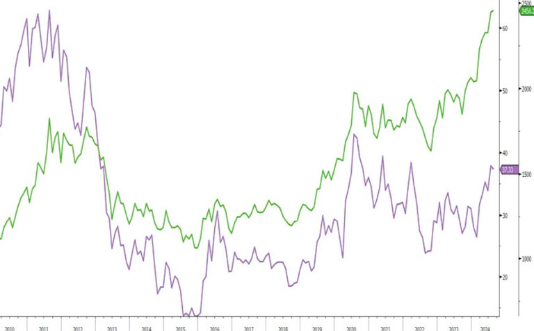 Los flujos financieros en los ETF de oro han sido débiles desde mediados de 2022, a pesar del aumento en el precio del oro, por lo que los mercados financieros no son lo que han empujado estas valoraciones.