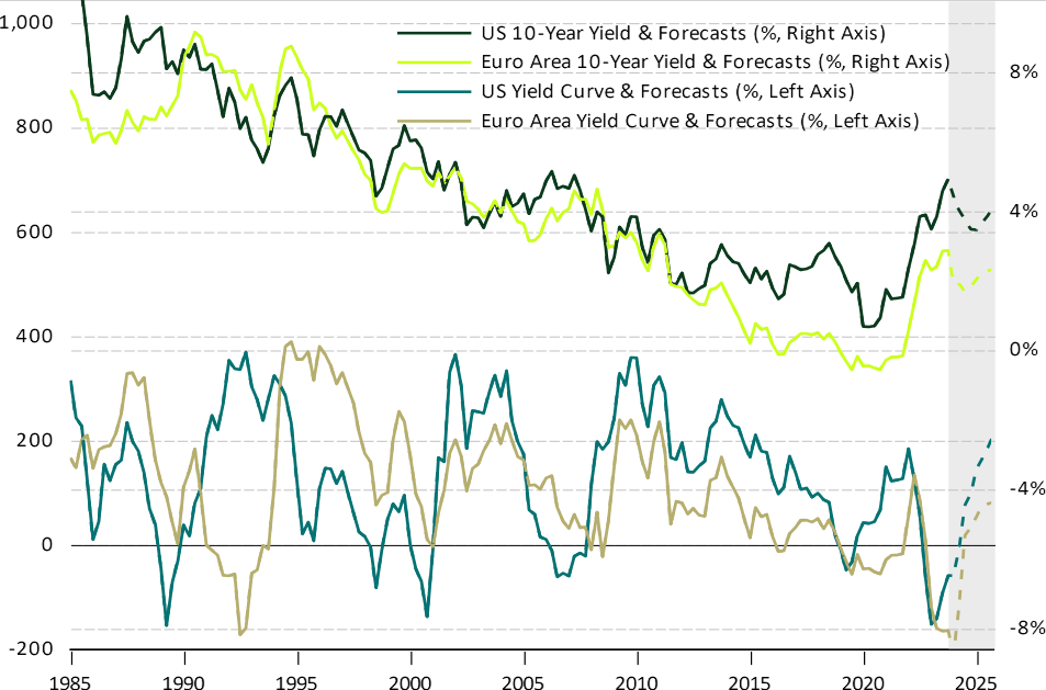 Graph 5: U.S. and European 10-year yields and yield curves