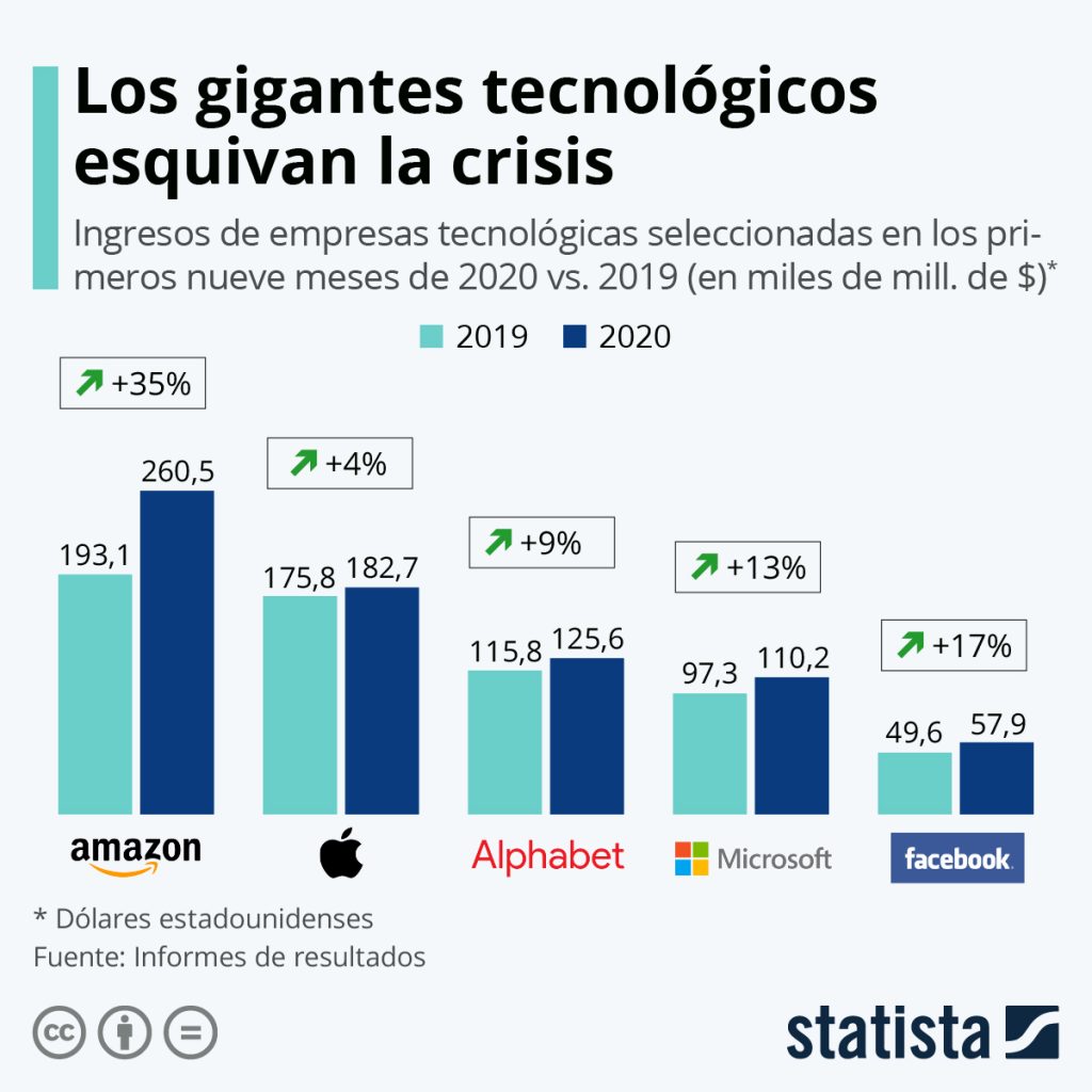 The pandemic of the new coronavirus has dealt a severe blow to the world economy. In a situation in which millions of companies are struggling to survive on their revenues, the technology giants have been spared, for the moment, from this crisis. This is one of the conclusions that can be drawn from the results published recently by each of the companies in the GAFAM group (Google, Apple, Facebook, Amazon and Microsoft).