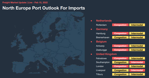 Six of the 10 European ports, including Rotterdam, Hamburg and Felixstowe in the United Kingdom, have traffic problems.