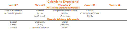 - The presentation of results continues, this week highlighting BioNTech, Chewy, Lululemon Athletica, McCormick, Walgreens Boots Alliance and Micron Technology.