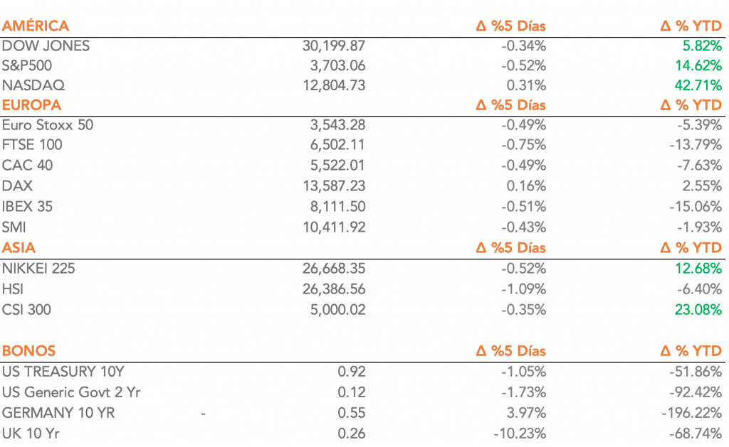 In Europe, the main financial markets closed the week in positive territory. With only one week left in the year, most European indices are still in negative territory so far in 2020.