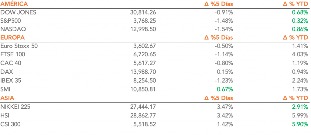 In Europe, the main financial markets closed the second week of the year 2021 with falls of about 2%. On the first day of this week, the European indices have undergone slight changes with respect to the close of Friday 15.