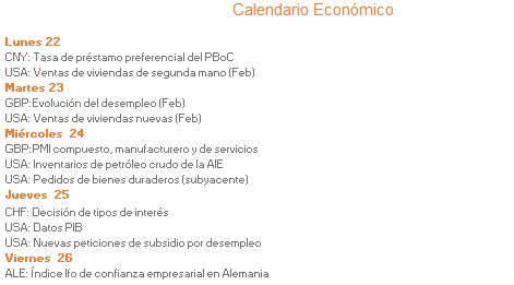 - The Swiss central bank will hold its monetary policy meeting on Thursday, March 25. The bank is expected to keep interest rates at -0.75% (the lowest rate in the world) and also maintain its interventionist stance.